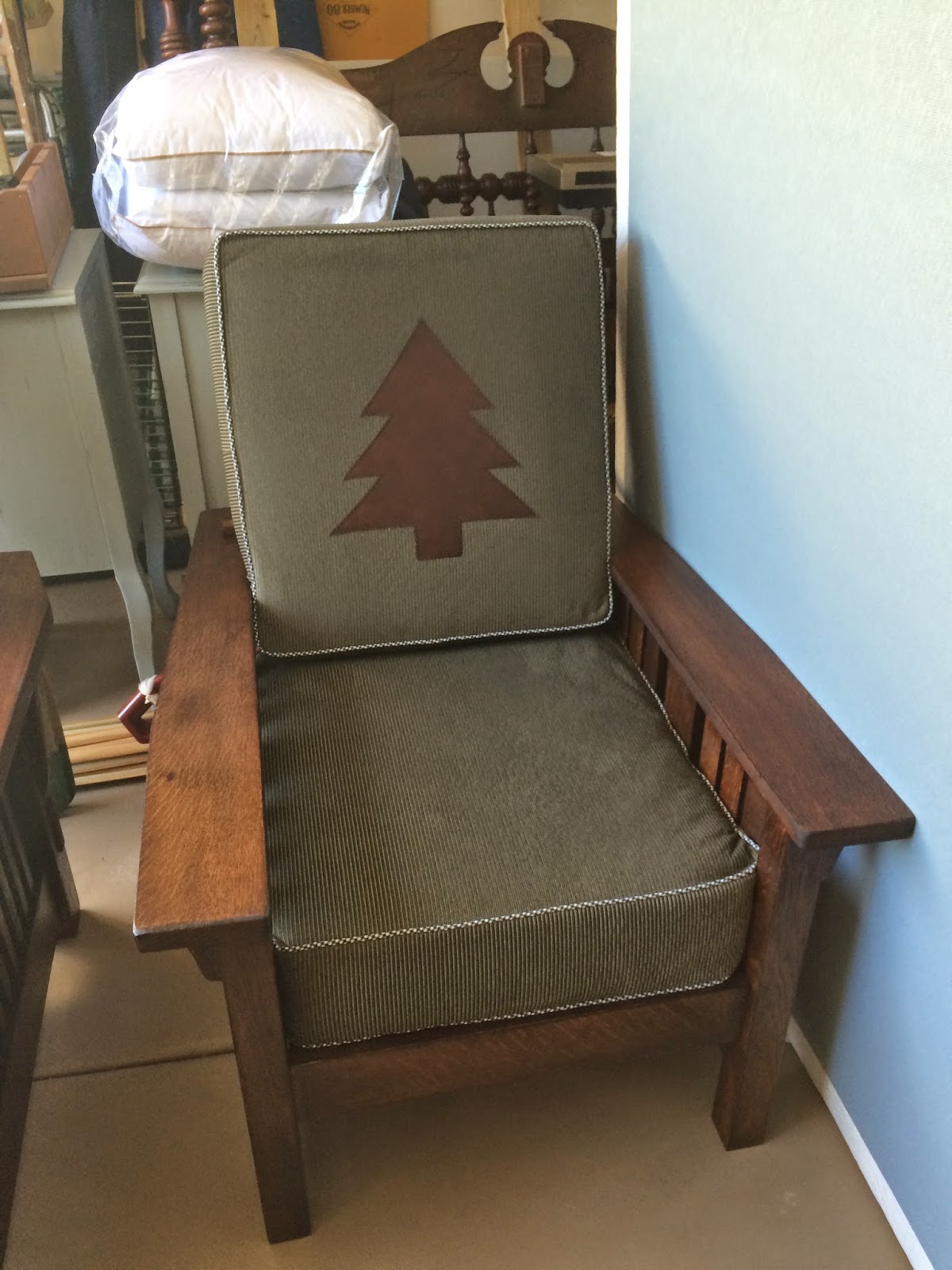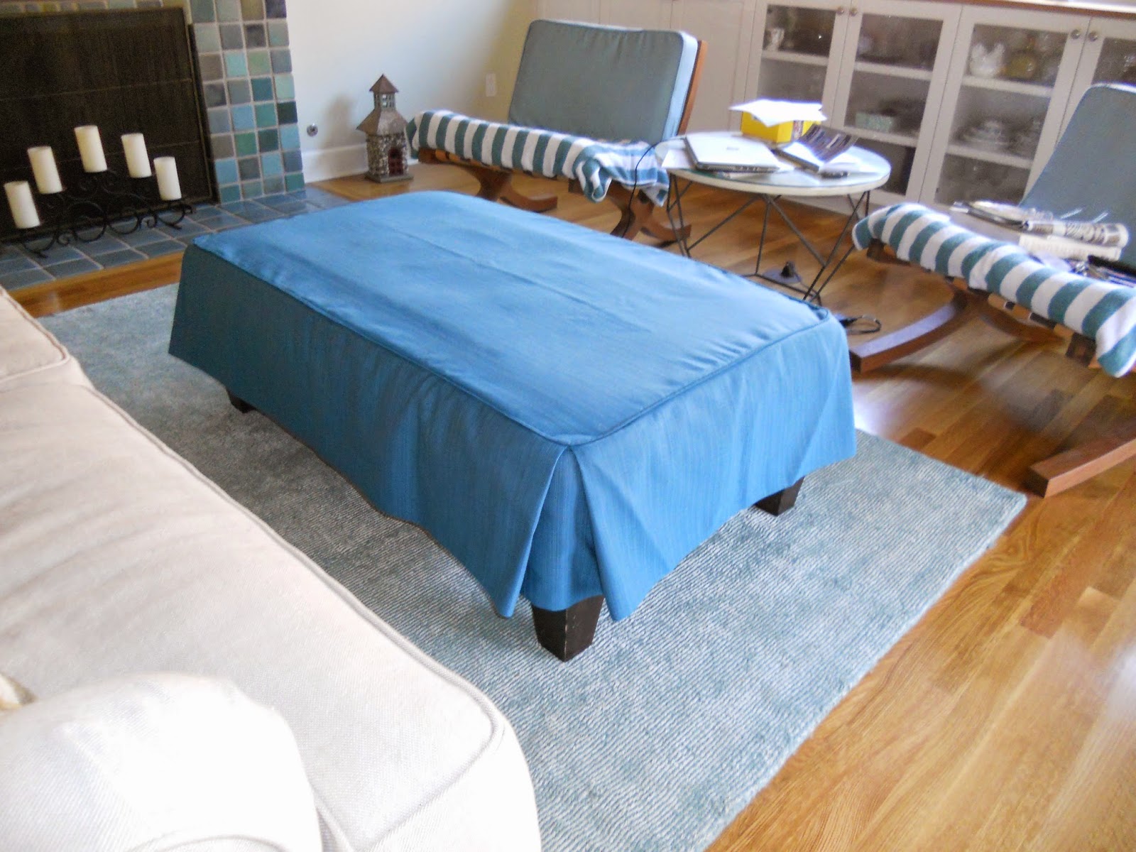 I had to do the chairs two at a time because my clients actually use the chairs when they eat dinner each night at the table. Luckily, they have four people in their family and when two chairs were at my house for an extended period of time, it was not a big deal. So after I finally got all 6 chairs redone, it was time to make little slipcovers, also out of Sunbrella.